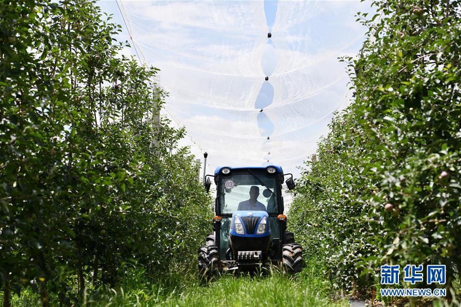 6月11日,農(nóng)民在貴州省威寧縣一處蘋果基地里駕駛農(nóng)機(jī)管護(hù)果園。近日,貴州省威寧彝族回族苗族自治縣的農(nóng)民搶抓農(nóng)時(shí),對(duì)蘋果園進(jìn)行疏果、除草等田間管理,呈現(xiàn)出一派夏管農(nóng)忙景象。威寧縣蘋果種植面積50余萬畝,蘋果產(chǎn)業(yè)已逐步成為當(dāng)?shù)剞r(nóng)民增收致富的主導(dǎo)產(chǎn)業(yè)之一。新華社記者楊文斌攝。