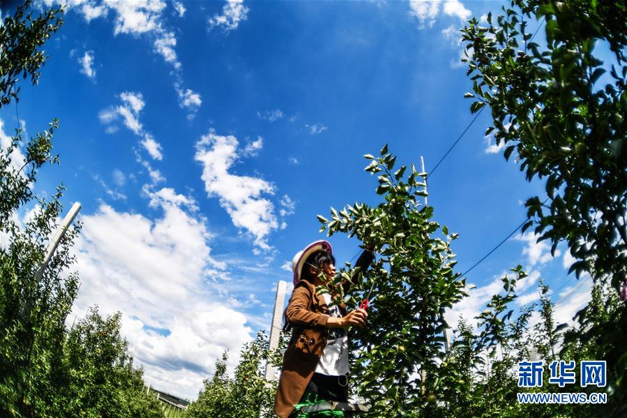 6月11日,農(nóng)民在貴州省威寧縣一處蘋果基地里疏果。近日,貴州省威寧彝族回族苗族自治縣的農(nóng)民搶抓農(nóng)時(shí),對(duì)蘋果園進(jìn)行疏果、除草等田間管理,呈現(xiàn)出一派夏管農(nóng)忙景象。威寧縣蘋果種植面積50余萬畝,蘋果產(chǎn)業(yè)已逐步成為當(dāng)?shù)剞r(nóng)民增收致富的主導(dǎo)產(chǎn)業(yè)之一。新華社記者楊文斌攝。