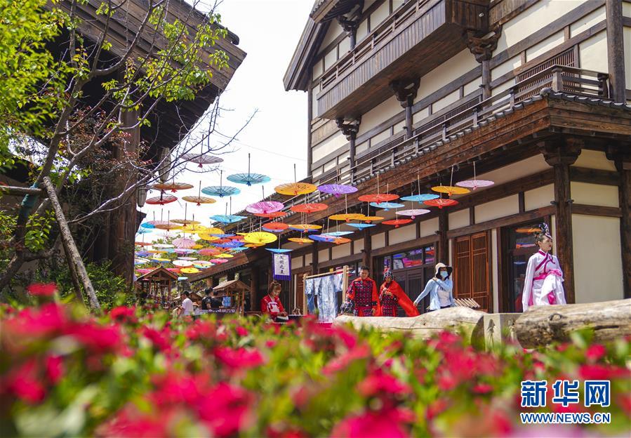 6月13日,在長春市世茂蓮花山小鎮(zhèn)寬厚里商街,表演者身穿漢服、古裝進行表演展示。當日是“文化和自然遺產(chǎn)日”。吉林長春首屆蓮花山消夏生活節(jié)在世茂蓮花山小鎮(zhèn)舉行?;顒訉⒎沁z展示與假日消暑休閑相結合,讓游人在“古色古香”的油紙傘巷中品傳統(tǒng)文化魅力,享夏日休閑愜意。新華社記者許暢攝。