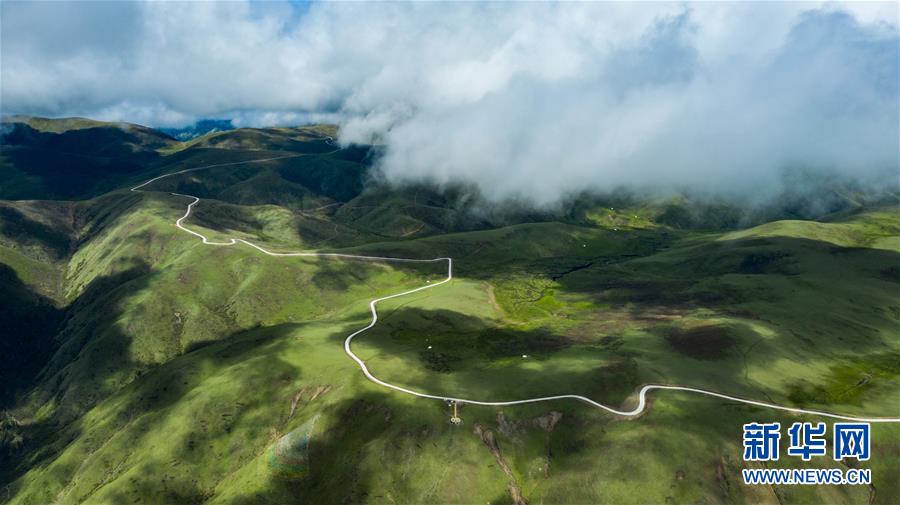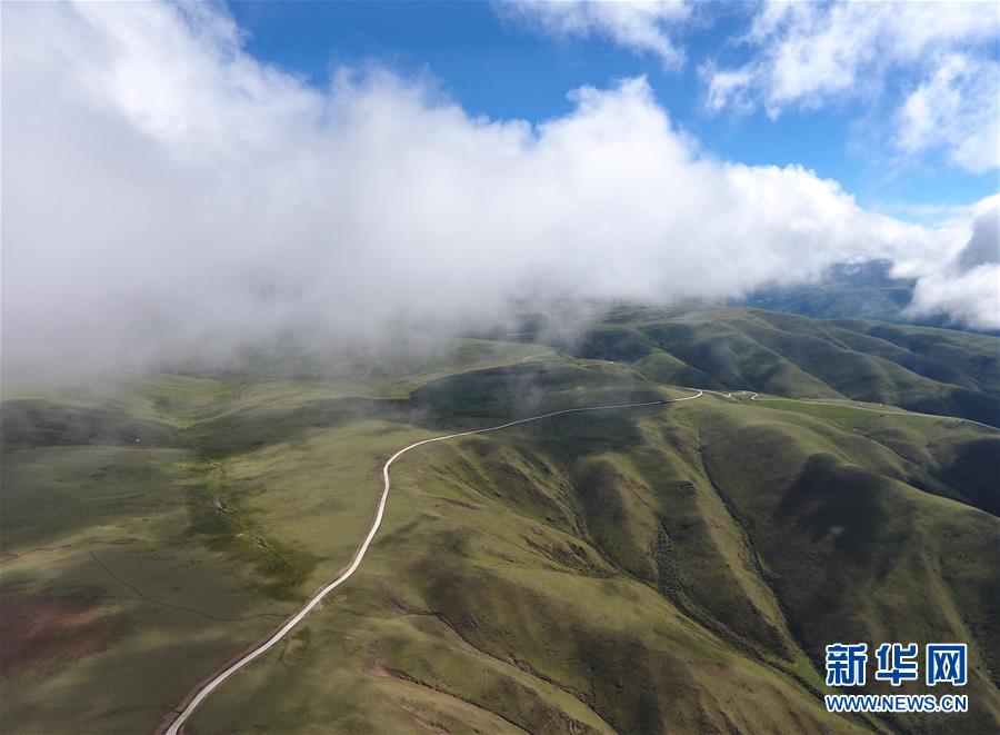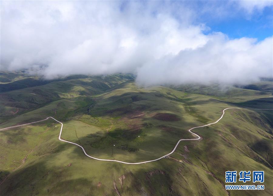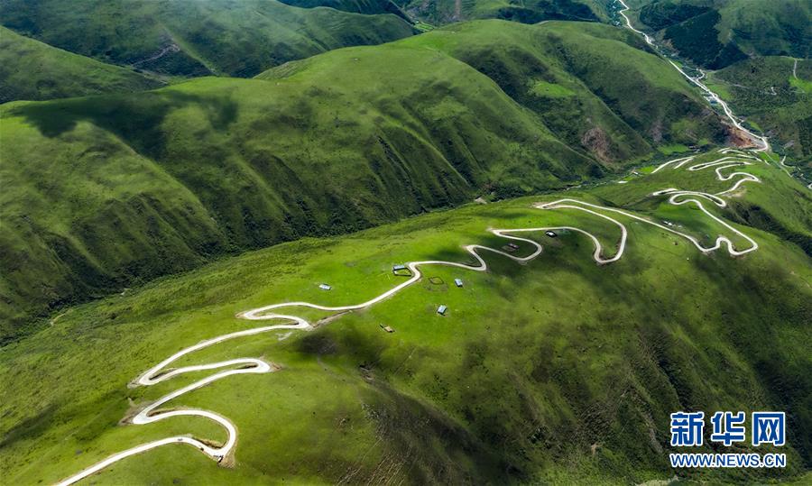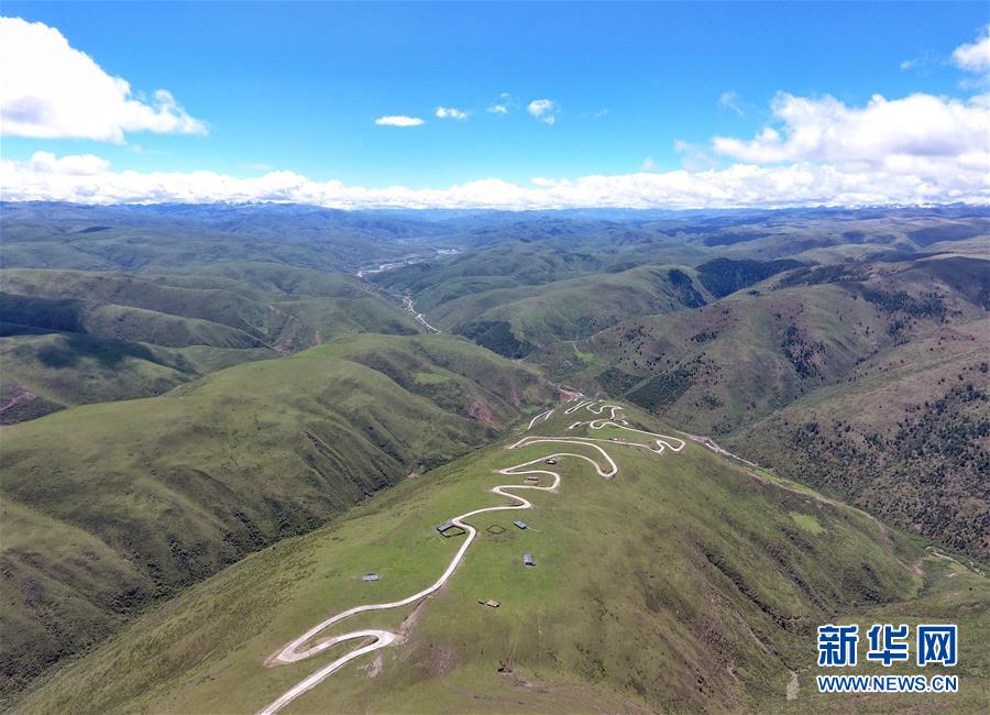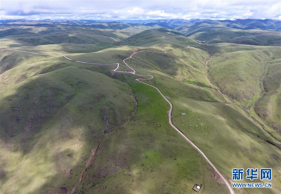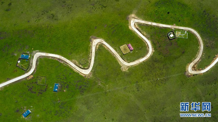 這是6月13日無人機(jī)航拍的“上南天路”和路邊的牧民居所。居住在路邊的牧民,因為有了這條路,出行更加方便。新華社記者 沈伯韓 攝