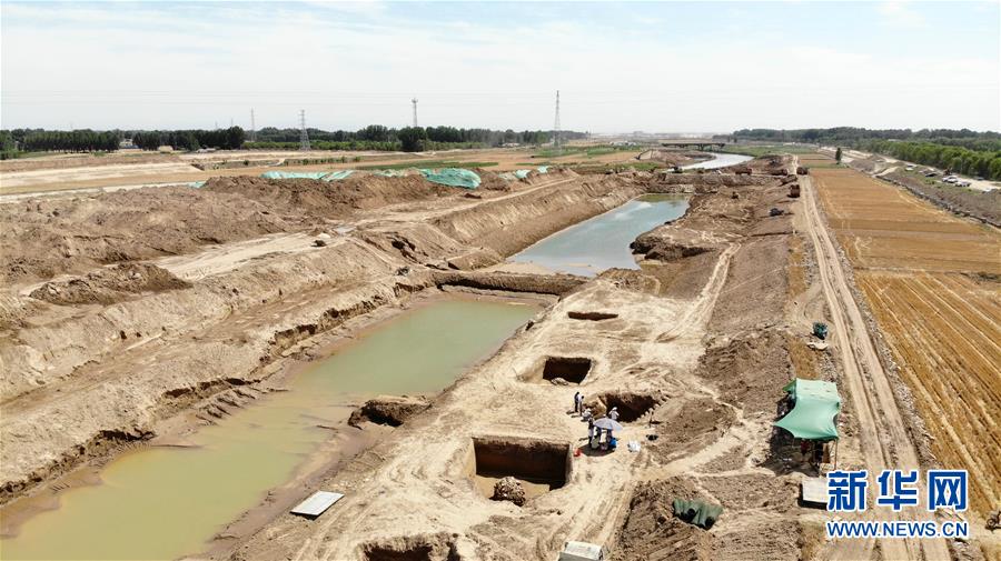 這是6月14日拍攝的山東小清河章丘段考古發(fā)掘現(xiàn)場(無人機照片)。近日,濟(jì)南市考古研究所考古工作隊在對小清河章丘段進(jìn)行考古調(diào)查和勘探時,發(fā)現(xiàn)了13座年代集中在北朝末期至唐朝初期的古墓。新華社記者 王凱 攝