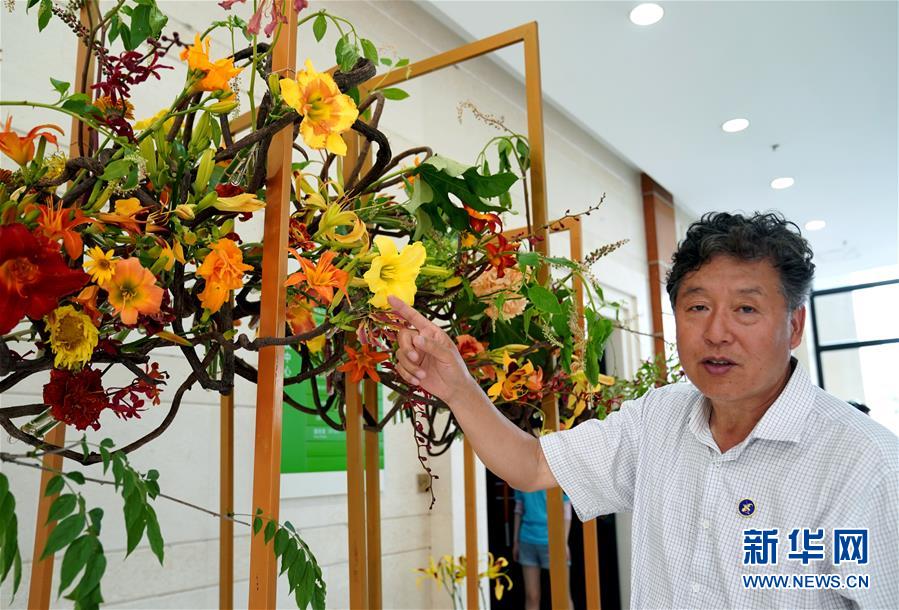 6月13日,上海應(yīng)用技術(shù)大學(xué)生態(tài)技術(shù)與工程學(xué)院的張志國教授在開幕式現(xiàn)場介紹不同品種的萱草花。當(dāng)日,“2020中國(上海)萱草文化節(jié)”在上海應(yīng)用技術(shù)大學(xué)開幕,校園里數(shù)百個(gè)品種的萱草花競相綻放,萱草科研推廣、萱草文化交流等多項(xiàng)活動(dòng)同時(shí)舉行。新華社記者 劉穎 攝