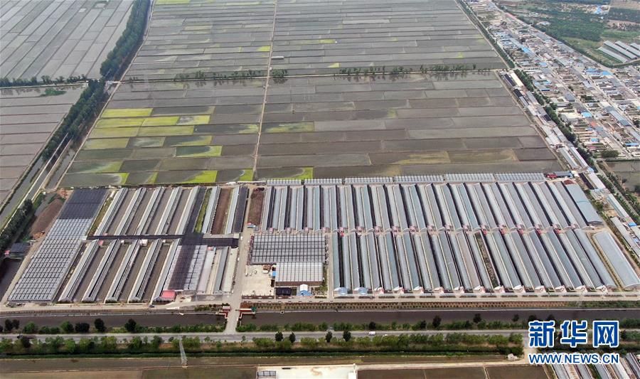 在遼寧省盤錦市大洼區(qū)新興鎮(zhèn)拍攝的劉廣會經(jīng)營的現(xiàn)代化育苗大棚(6月9日攝,無人機照片)。新華社記者 楊青 攝