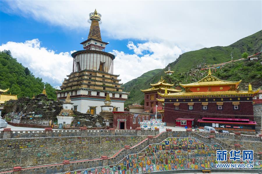 四川省阿壩藏族羌族自治州壤塘縣棒托石刻公園(6月13日攝,無人機照片)。新華社記者 沈伯韓 攝