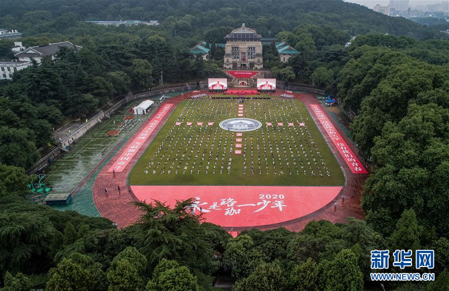 6月20日拍攝的武漢大學(xué)2020年畢業(yè)典禮現(xiàn)場(chǎng)(無(wú)人機(jī)照片)。