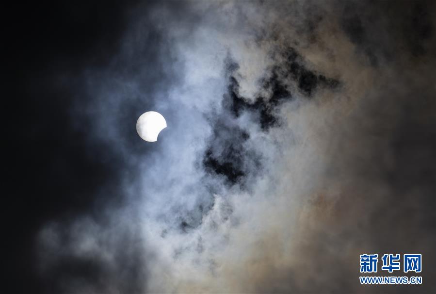 在拉薩觀賞到的日食(6月21日攝)?!叭窄h(huán)食”天文景觀于6月21日“夏至日”下午在天宇上演。新華社記者 孫非 攝