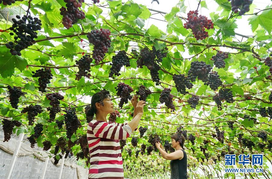 6月21日,灤州市雷莊鎮(zhèn)吉祥現(xiàn)代農(nóng)業(yè)園區(qū)的員工在打理種植的葡萄。近年來(lái),河北省灤州市積極調(diào)整農(nóng)業(yè)產(chǎn)業(yè)結(jié)構(gòu),鼓勵(lì)當(dāng)?shù)睾献魃绾娃r(nóng)戶發(fā)展果蔬種植,豐富當(dāng)?shù)剞r(nóng)產(chǎn)品種類(lèi),越來(lái)越多的農(nóng)民依靠“果園子”“菜籃子”鼓起了“錢(qián)袋子”。新華社記者牟宇攝