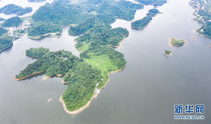 6月21日拍攝的紅楓湖景區(qū)風(fēng)光(無人機照片)。夏至?xí)r節(jié),貴州省清鎮(zhèn)市紅楓湖景區(qū)草木蒼翠,秀麗的湖光山色吸引不少游客前來游玩。新華社記者陶亮攝