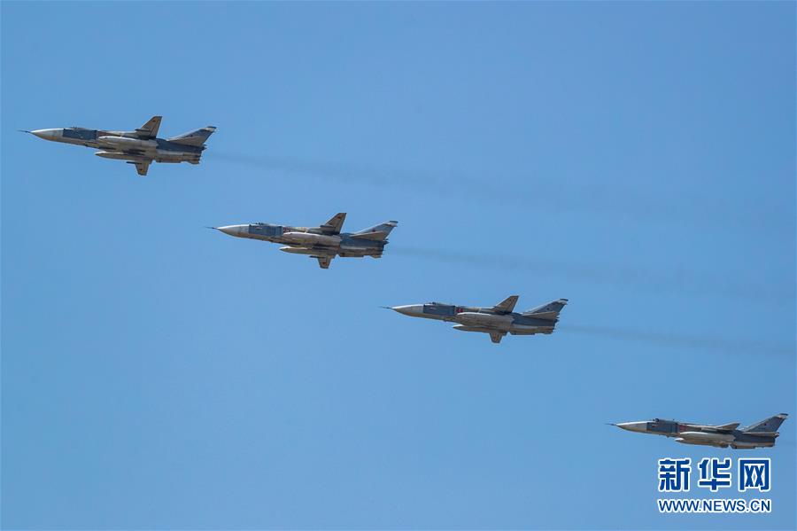 6月20日,在俄羅斯首都莫斯科,蘇-24M戰(zhàn)斗轟炸機編隊參加閱兵式彩排。俄羅斯將于6月24日舉行紀念衛(wèi)國戰(zhàn)爭勝利75周年閱兵式。新華社記者白雪騏攝