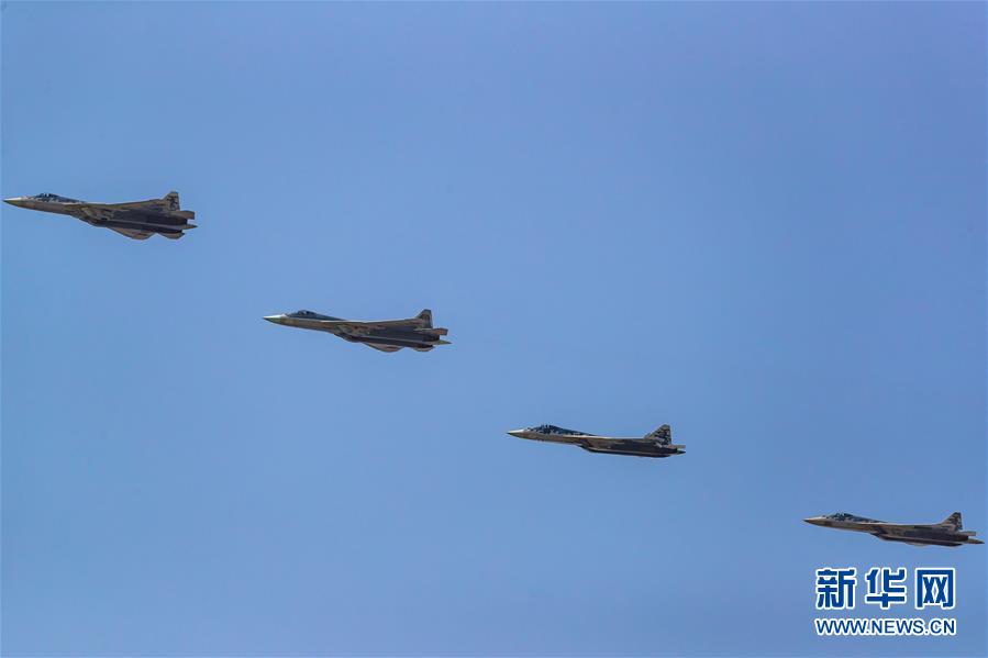 6月20日,在俄羅斯首都莫斯科,蘇-57戰(zhàn)斗機編隊參加閱兵式彩排。俄羅斯將于6月24日舉行紀念衛(wèi)國戰(zhàn)爭勝利75周年閱兵式。新華社記者白雪騏攝