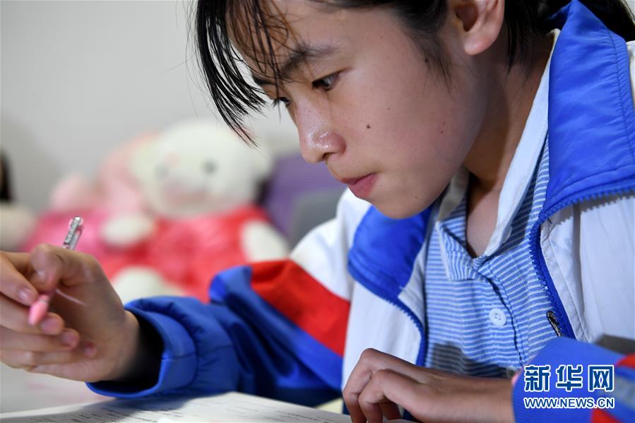 6月19日,蔡齊艷在家里做作業(yè)。新華社記者劉軍喜攝