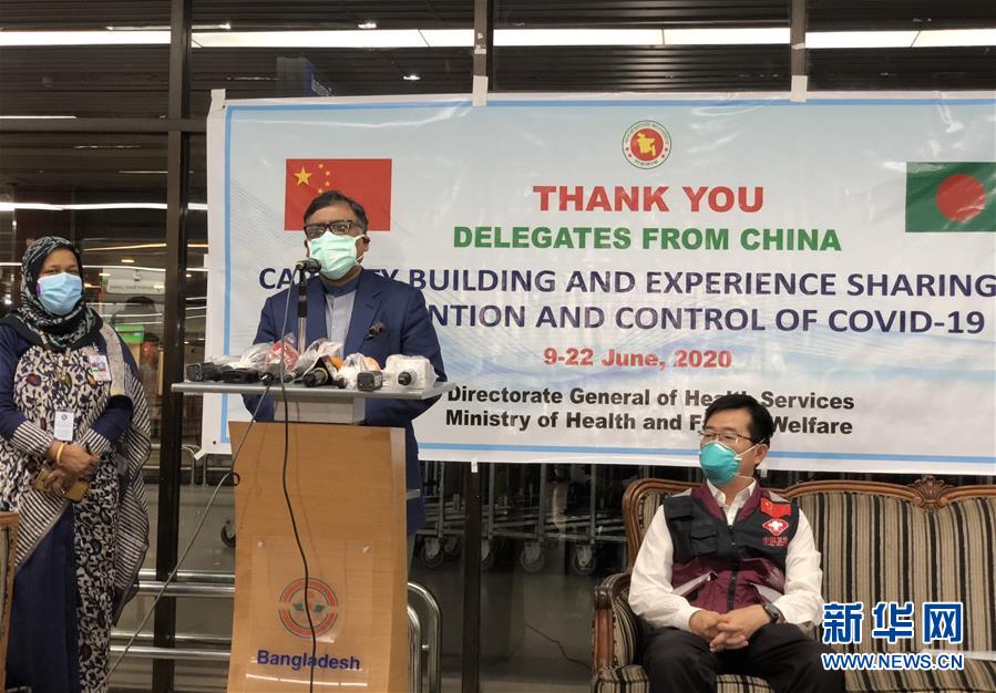 6月22日,孟加拉國衛(wèi)生和家庭福利部部長馬利克(中)在首都達卡舉行的送行儀式上致辭感謝中方專家組。中國赴孟加拉國抗疫醫(yī)療專家組圓滿完成任務,于22日乘機返回祖國。孟加拉國衛(wèi)生和家庭福利部部長馬利克對疫情發(fā)生以來中國給予孟加拉國的大力支持表示感謝。新華社記者劉春濤攝