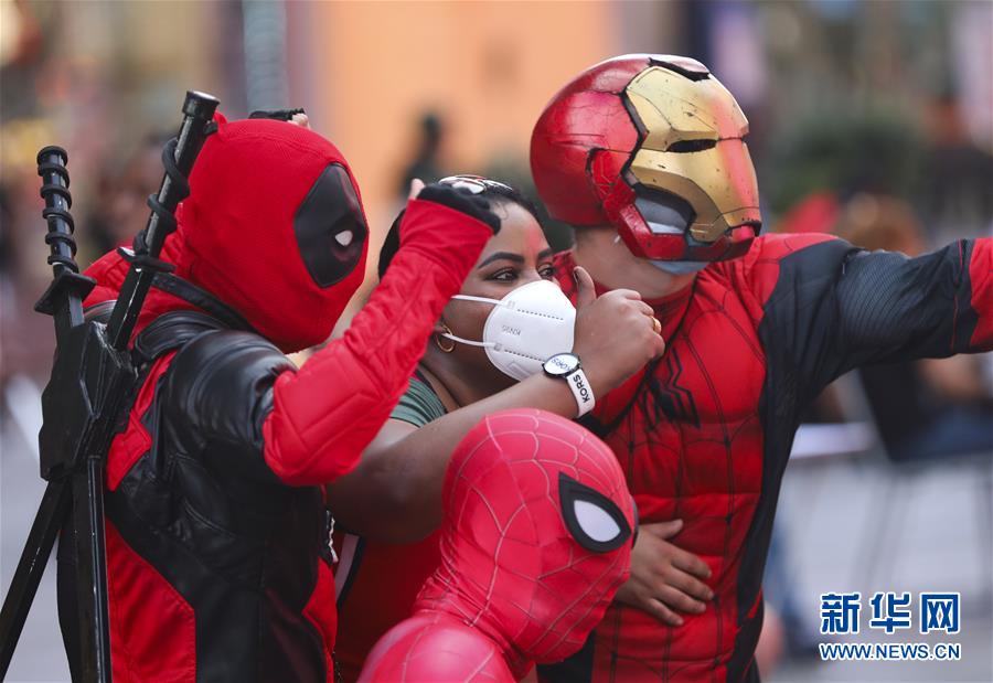 6月27日,在美國(guó)紐約時(shí)報(bào)廣場(chǎng),一名游客與角色扮演者合影。美國(guó)約翰斯·霍普金斯大學(xué)27日發(fā)布的新冠疫情最新統(tǒng)計(jì)數(shù)據(jù)顯示,截至美國(guó)東部時(shí)間27日16時(shí)35分(北京時(shí)間28日4時(shí)35分),美國(guó)累計(jì)新冠確診病例2500419例,累計(jì)死亡病例125434例。新華社記者王迎攝