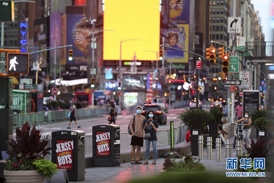 6月27日,人們?cè)诿绹?guó)紐約時(shí)報(bào)廣場(chǎng)觀光。美國(guó)約翰斯·霍普金斯大學(xué)27日發(fā)布的新冠疫情最新統(tǒng)計(jì)數(shù)據(jù)顯示,截至美國(guó)東部時(shí)間27日16時(shí)35分(北京時(shí)間28日4時(shí)35分),美國(guó)累計(jì)新冠確診病例2500419例,累計(jì)死亡病例125434例。新華社記者王迎攝