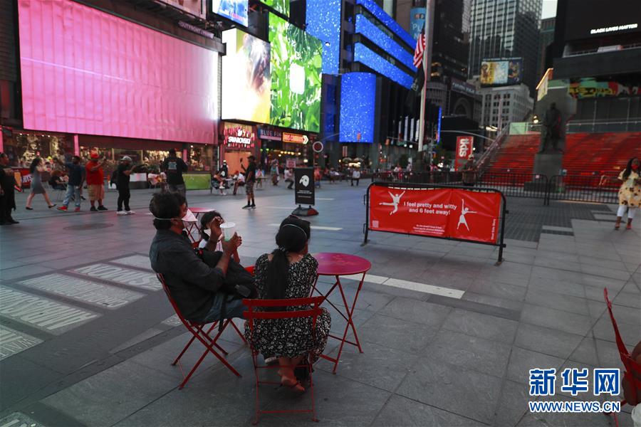 6月27日,人們?cè)诿绹?guó)紐約時(shí)報(bào)廣場(chǎng)的公共休閑區(qū)休息。美國(guó)約翰斯·霍普金斯大學(xué)27日發(fā)布的新冠疫情最新統(tǒng)計(jì)數(shù)據(jù)顯示,截至美國(guó)東部時(shí)間27日16時(shí)35分(北京時(shí)間28日4時(shí)35分),美國(guó)累計(jì)新冠確診病例2500419例,累計(jì)死亡病例125434例。新華社記者王迎攝