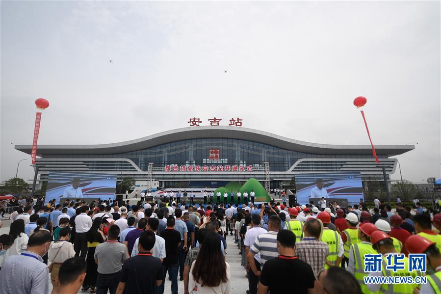 這是6月28日拍攝的商合杭高鐵浙江安吉站開通儀式現(xiàn)場(chǎng)。新華社記者黃宗治攝