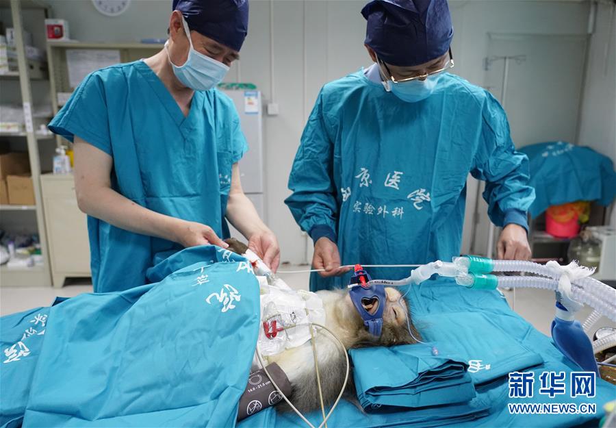 6月29日,研究人員在病房內(nèi)查看移植肝受體猴。日前,多基因編輯豬-恒河猴異種肝、心、腎器官移植在位于陜西西安的空軍軍醫(yī)大學(xué)西京醫(yī)院順利實(shí)施。研究團(tuán)隊(duì)使用豬內(nèi)源性逆轉(zhuǎn)錄病毒(PERV)敲除的13個基因修飾豬作為供體,將一個供體豬的肝、心、腎分別移植給3只恒河猴受體。目前,移植肝和對應(yīng)的受體猴已存活16天,突破國際上的豬-猴輔助性肝移植最長存活時間記錄。這項(xiàng)研究有助于未來解決器官短缺造成的臨床器官移植發(fā)展受限難題。新華社記者邵瑞攝
