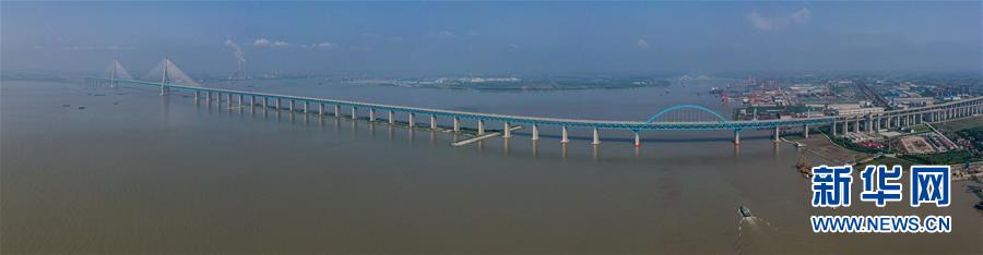 滬蘇通長(zhǎng)江公鐵大橋(6月30日攝,無(wú)人機(jī)全景拼接照片)。即將于7月1日通車(chē)的滬蘇通長(zhǎng)江公鐵大橋北起江蘇南通,南至江蘇張家港,公鐵合建跨江正橋全長(zhǎng)5827米,為集合高速公路、客貨混線(xiàn)鐵路、高速鐵路的“三合一”過(guò)江通道,建成通車(chē)后將有效促進(jìn)長(zhǎng)三角城市群跨江融合、協(xié)同發(fā)展。新華社記者李博攝