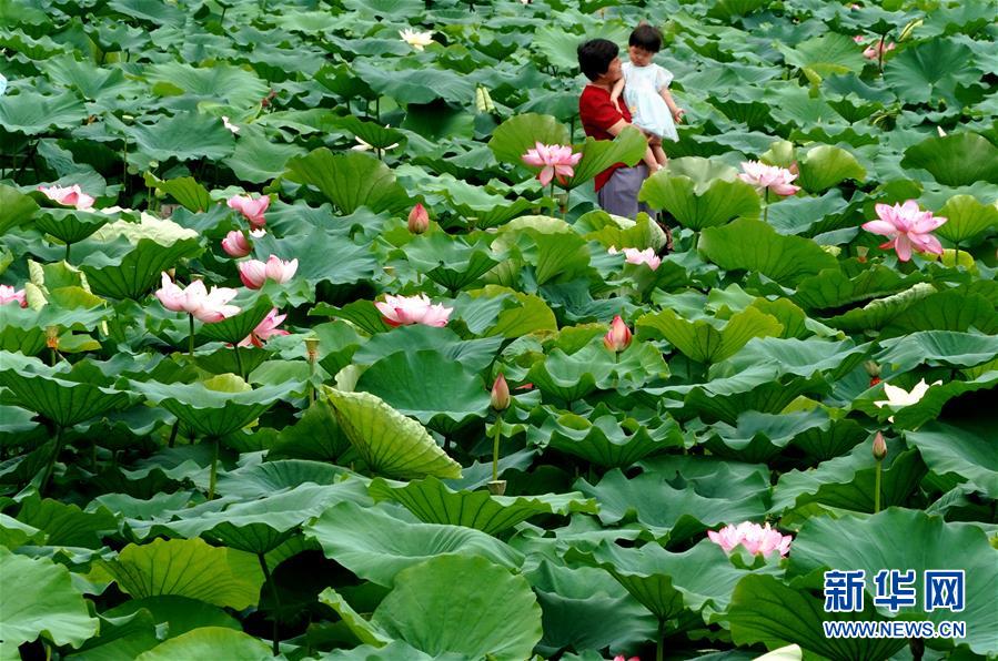 6月30日,市民在河南鄭州紫荊山公園內(nèi)觀賞荷花。新華社記者李安攝