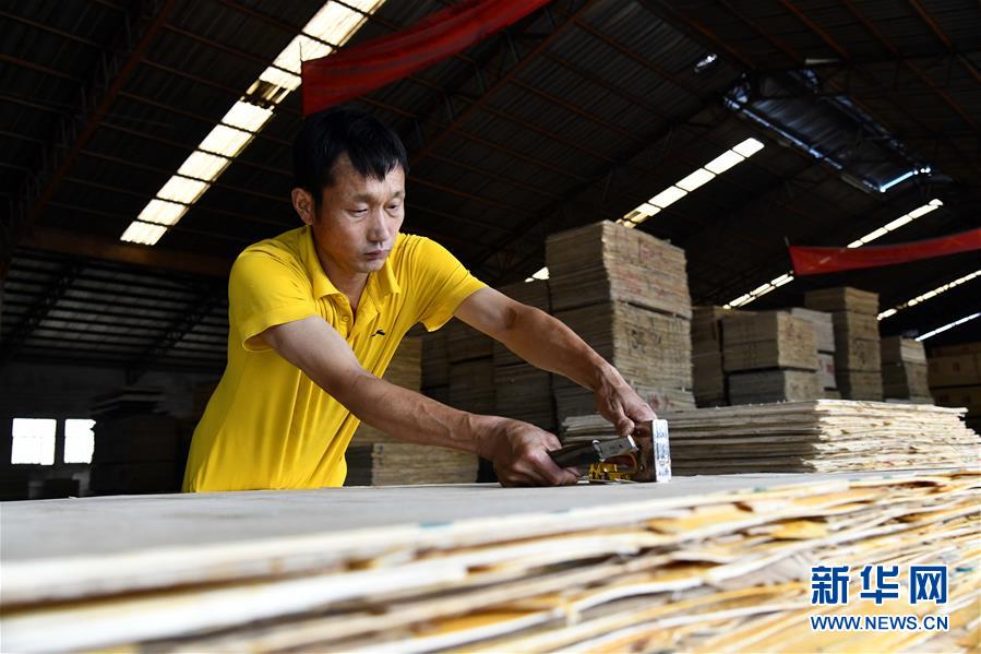 6月30日,在費(fèi)縣坤林木業(yè)有限公司,工人在加工板材。地處沂蒙革命老區(qū)的山東省臨沂市費(fèi)縣探沂鎮(zhèn)近年來圍繞鄉(xiāng)村振興戰(zhàn)略,謀劃“一鎮(zhèn)一業(yè)”,以木業(yè)產(chǎn)業(yè)為抓手,積極引導(dǎo)全鎮(zhèn)3136家木業(yè)企業(yè)進(jìn)行園區(qū)化、集約化、智能化發(fā)展,成為遠(yuǎn)近聞名的“木業(yè)特色小鎮(zhèn)”。2019年,該鎮(zhèn)規(guī)模以上工業(yè)總產(chǎn)值187億元,農(nóng)民人均純收入2萬元左右,木業(yè)產(chǎn)業(yè)有力助推當(dāng)?shù)氐泥l(xiāng)村振興。新華社記者郭緒雷攝