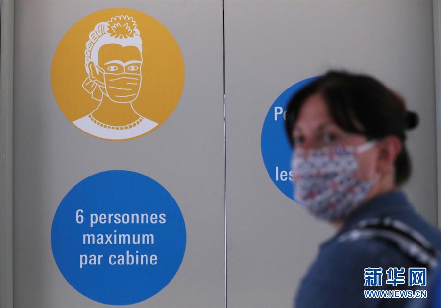 7月1日,法國(guó)巴黎蓬皮杜藝術(shù)中心的電梯上貼著“請(qǐng)佩戴口罩”和“最多6人乘梯”的標(biāo)識(shí)。因新冠疫情關(guān)閉的法國(guó)巴黎蓬皮杜藝術(shù)中心于7月1日重新開門迎客。目前,中心只開放6層的臨時(shí)展區(qū)和4、5層的現(xiàn)代藝術(shù)常設(shè)展區(qū)。參觀者需提前網(wǎng)上預(yù)約參觀時(shí)段,11歲以上參觀者須佩戴口罩,參觀過程中保持安全距離。新華社記者高靜攝