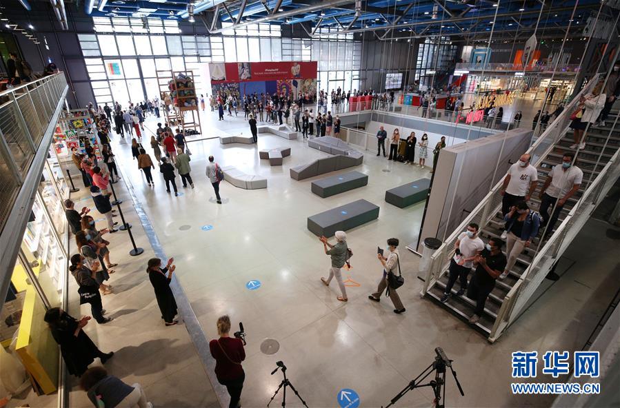 7月1日,法國巴黎蓬皮杜藝術(shù)中心的工作人員鼓掌歡迎參觀者。因新冠疫情關(guān)閉的法國巴黎蓬皮杜藝術(shù)中心于7月1日重新開門迎客。目前,中心只開放6層的臨時(shí)展區(qū)和4、5層的現(xiàn)代藝術(shù)常設(shè)展區(qū)。參觀者需提前網(wǎng)上預(yù)約參觀時(shí)段,11歲以上參觀者須佩戴口罩,參觀過程中保持安全距離。新華社記者高靜攝