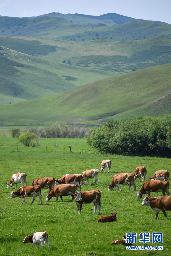 烏蘭毛都草原上的牛群(7月2日攝)。盛夏時(shí)節(jié),內(nèi)蒙古興安盟科爾沁右翼前旗的烏蘭毛都草原綠意盎然,風(fēng)景醉人。烏蘭毛都草原地處大興安嶺南麓,屬丘陵山地草原,風(fēng)光獨(dú)特。新華社記者貝赫攝