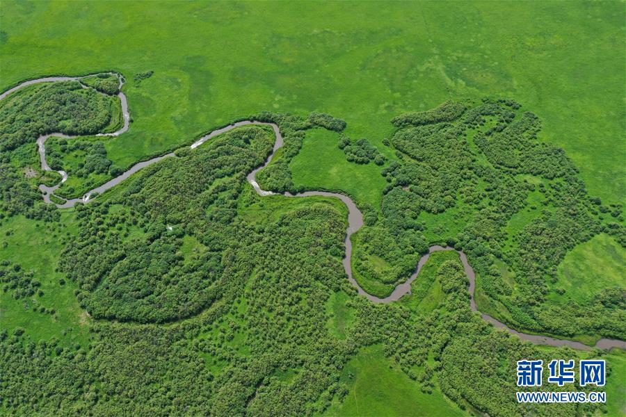 烏蘭毛都草原景色(7月1日無(wú)人機(jī)照片)。盛夏時(shí)節(jié),內(nèi)蒙古興安盟科爾沁右翼前旗的烏蘭毛都草原綠意盎然,風(fēng)景醉人。烏蘭毛都草原地處大興安嶺南麓,屬丘陵山地草原,風(fēng)光獨(dú)特。新華社記者徐欽攝