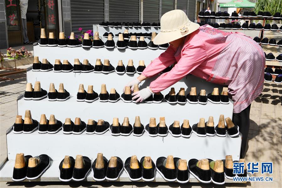7月2日,臨夏縣百利布鞋加工農(nóng)民專業(yè)合作社員工在擺放布鞋。甘肅省臨夏回族自治州臨夏縣將布鞋加工定為重點扶持發(fā)展的產(chǎn)業(yè),采用“政府+公司+貧困戶”的產(chǎn)業(yè)扶貧模式,由政府主導(dǎo)、企業(yè)出資,在貧困村建設(shè)“扶貧車間”,吸納貧困群眾從事布鞋加工產(chǎn)業(yè)增加收入。截至2019年底,當(dāng)?shù)夭夹庸て髽I(yè)和加工戶遍及近百個行政村,從業(yè)人員達(dá)到4000多人,累計生產(chǎn)布鞋600多萬雙,實現(xiàn)銷售收入2.32億元。新華社記者范培珅攝