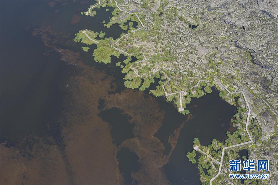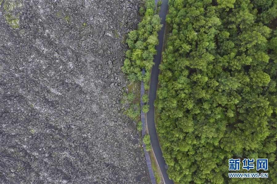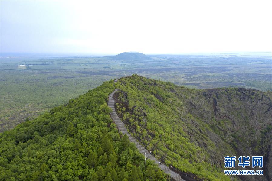 這是7月3日拍攝的五大連池風(fēng)景區(qū)(無人機(jī)照片)。 時(shí)下,五大連池風(fēng)景區(qū)內(nèi)植被蔥蘢,在火山、熔巖臺(tái)地、火山堰塞湖的映襯下,景色壯美。 五大連池風(fēng)景區(qū)位于黑龍江省黑河市,是較為典型和完整的近代火山噴發(fā)遺跡,被喻為“天然的火山博物館”。 新華社記者 謝劍飛 攝
