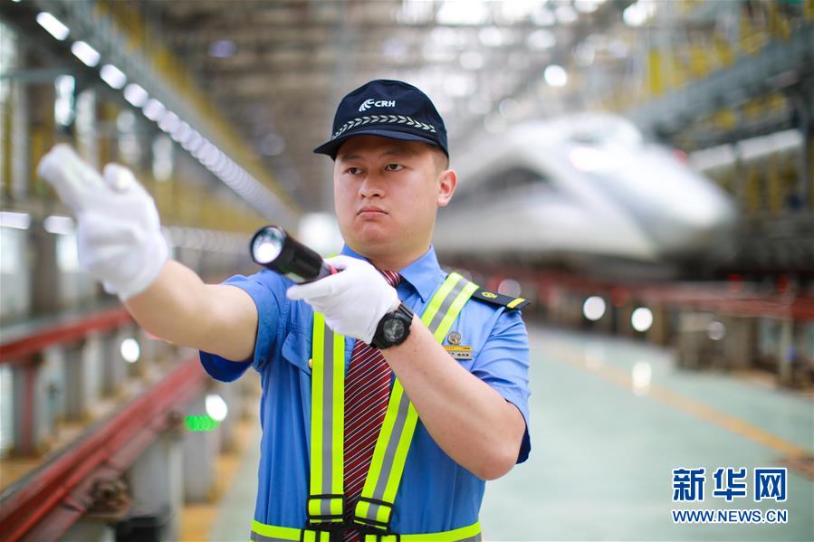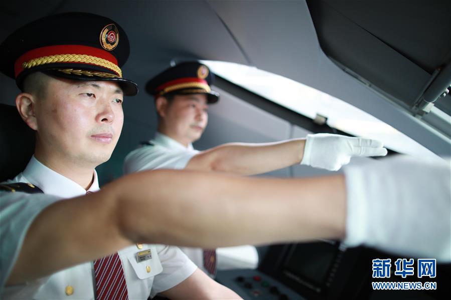 7月3日,擔(dān)任首發(fā)列車值乘工作的隨車機(jī)械師在貴陽亮相。 新華社記者 劉續(xù) 攝