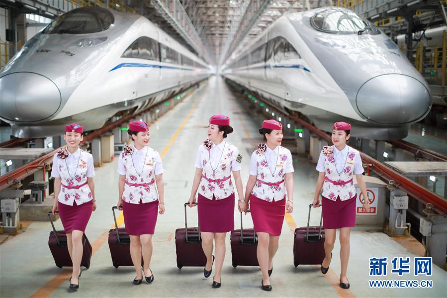 7月3日,擔(dān)任首發(fā)列車值乘工作的貴陽客運(yùn)段乘務(wù)員在貴陽亮相。 新華社記者 劉續(xù) 攝