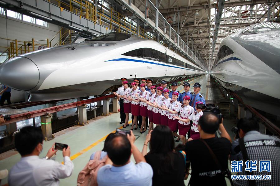 7月3日,擔(dān)任首發(fā)列車值乘工作的班組人員在貴陽亮相。 新華社記者 劉續(xù) 攝