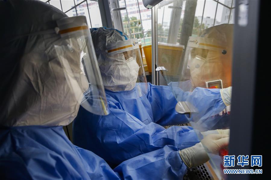 7月3日,中日友好醫(yī)院檢驗(yàn)科新冠核酸檢測(cè)實(shí)驗(yàn)室的檢驗(yàn)人員張?chǎng)稳〕鼋?jīng)過(guò)滅活的樣本。新華社記者張玉薇攝