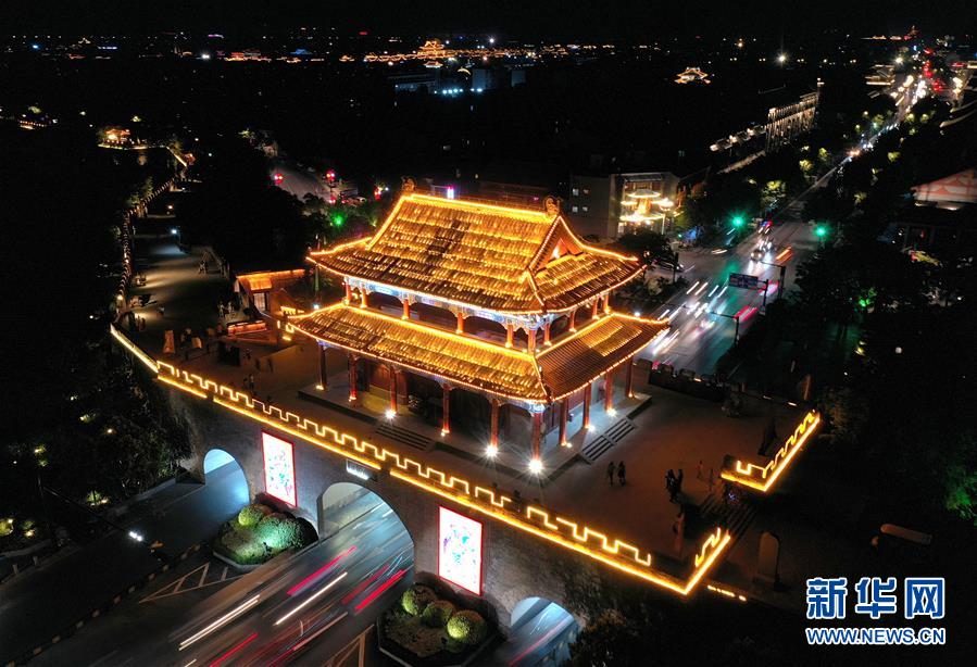這是6月1日拍攝的河南開封鼓樓夜市(無人機照片)。新華社記者 李安 攝