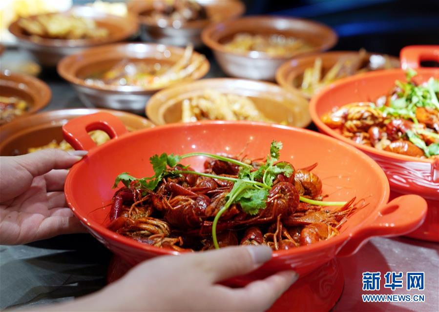7月3日在上海豫園小吃城內(nèi)拍攝的小龍蝦菜肴。從7月第一個周末起,上海豫園原有的“豫園六點(diǎn)半”集市全面升級,煥彩燈光、演藝活動和花車集市全線更新,讓市民和游客在觀燈、觀人、觀演的沉浸式體驗(yàn)中,享受夏日特色的“食玩”樂趣。新華社記者 劉穎 攝