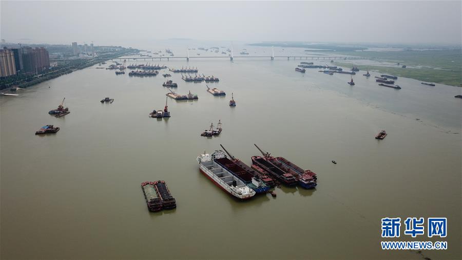 7月5日拍攝的岳陽洞庭湖主航道(無人機照片)。受持續(xù)強降雨和上游來水影響,洞庭湖城陵磯水位持續(xù)上漲。水文監(jiān)測數(shù)據(jù)顯示,截至7月5日16時,洞庭湖城陵磯水位達到32.75米,超警戒水位0.25米。當(dāng)?shù)胤姥床块T正嚴(yán)密監(jiān)控水情雨情,備好防汛物資并加強應(yīng)急值守,力爭安全度汛。新華社記者陳澤國攝