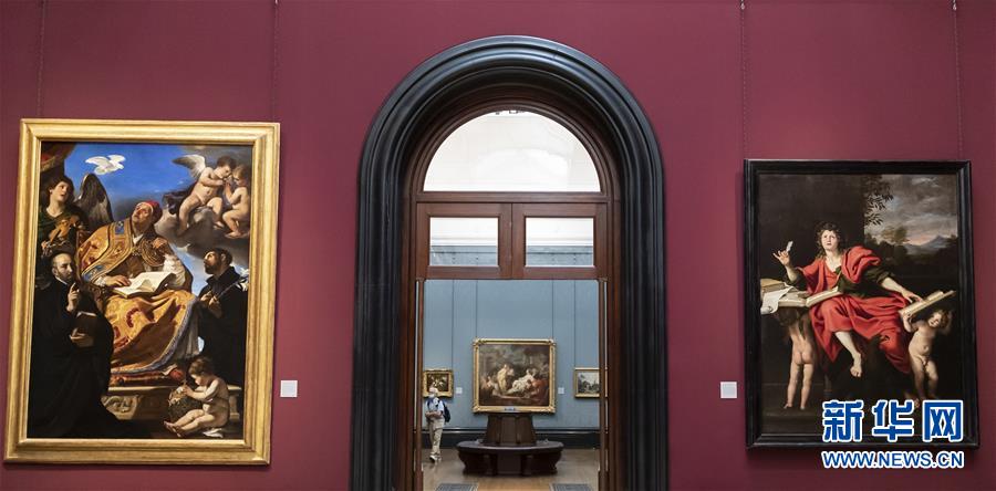 7月4日,參觀者佩戴口罩在英國國家美術(shù)館的媒體開放日上參觀。受新冠疫情影響而關(guān)閉的英國國家美術(shù)館將于7月8日重新對公眾開放,成為倫敦首批開門迎客的博物館、美術(shù)館。參觀者需提前網(wǎng)上預(yù)約參觀時段,全程佩戴口罩且保持安全距離。新華社記者韓巖攝