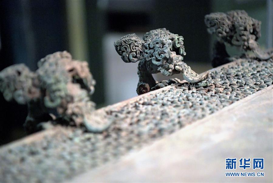 這是河南博物院展廳里的云紋銅禁局部(2019年11月18日攝)。新華社記者李安攝