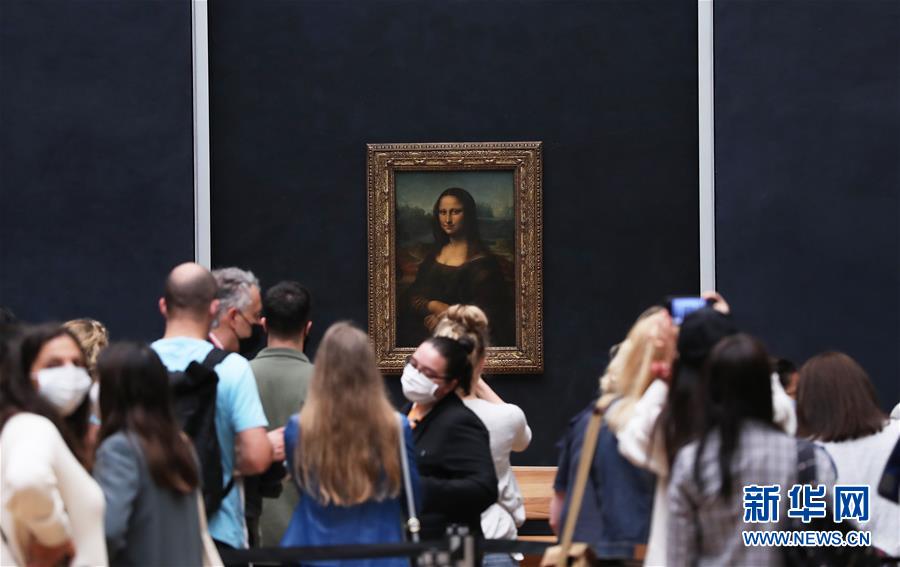 7月6日,參觀者在法國巴黎盧浮宮博物館欣賞萊昂納多·達·芬奇的名作《蒙娜麗莎》。因新冠病毒疫情關(guān)閉3個多月后,法國盧浮宮博物館于6日重新開放。新華社記者高靜攝