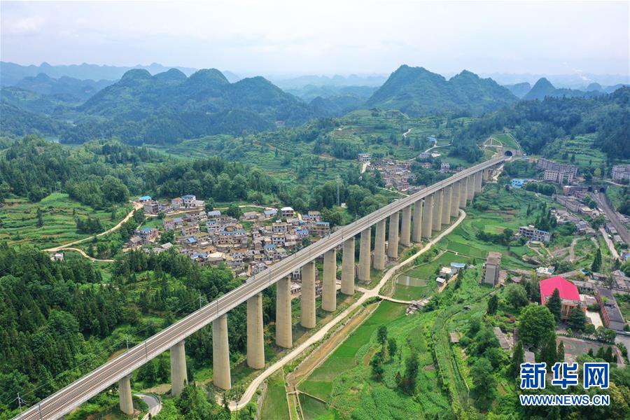 7月6日拍攝的安六鐵路岱港村特大橋(無人機(jī)照片)。當(dāng)日,新建貴州安六鐵路(安順至六盤水)聯(lián)調(diào)聯(lián)試工作進(jìn)入收尾階段,開通前的各項(xiàng)準(zhǔn)備工作已基本就緒。安六鐵路線路全長(zhǎng)約125公里,設(shè)計(jì)時(shí)速250公里,為國(guó)家I級(jí)雙線客運(yùn)專線。建成投用后,貴陽至六盤水的鐵路旅行時(shí)間可從現(xiàn)在的3.5小時(shí)縮短為1小時(shí)左右,貴州省六盤水市將全面接入全國(guó)高鐵網(wǎng)。新華社記者劉續(xù)攝