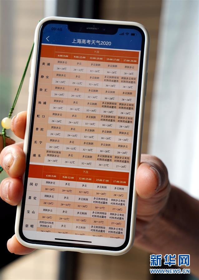 7月7日,上海市氣象部門推出“分時分區(qū)”的高考氣象服務(wù)。當(dāng)日,2020年高考拉開帷幕。新華社記者劉穎攝
