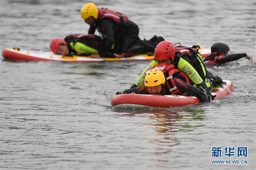 7月7日,吳興區(qū)消防救援大隊隊員在演練水上救援,以備搶險。近日,位于浙江北部的湖州市遭遇多輪降雨,東部平原河網(wǎng)普遍超警戒水位,水庫山塘高位運(yùn)行。7月5日12時30分,湖州市人民政府防汛防旱指揮部將防汛應(yīng)急響應(yīng)提升至Ⅲ級,要求各地密切監(jiān)測汛情,切實做好各項防范工作,確保安全度汛。新華社記者黃宗治攝