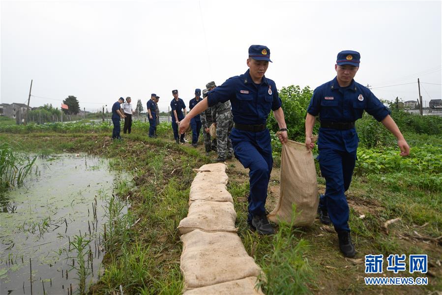 7月7日,吳興區(qū)消防救援大隊隊員在織里鎮(zhèn)曹家籪村幫助村民加固防洪堤。近日,位于浙江北部的湖州市遭遇多輪降雨,東部平原河網(wǎng)普遍超警戒水位,水庫山塘高位運(yùn)行。7月5日12時30分,湖州市人民政府防汛防旱指揮部將防汛應(yīng)急響應(yīng)提升至Ⅲ級,要求各地密切監(jiān)測汛情,切實做好各項防范工作,確保安全度汛。新華社記者黃宗治攝