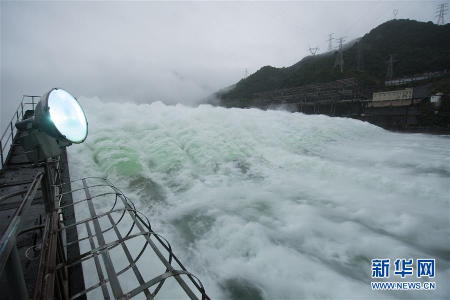 7月7日下午開啟7孔泄洪的新安江水庫。受持續(xù)降水影響,浙江新安江水庫水位持續(xù)快速上升。繼當日10時開啟3孔、12時開啟5孔泄洪后,新安江水庫于16時增加到7孔泄洪。新安江水庫是華東地區(qū)最大的水庫,在錢塘江流域的防洪度汛中起到關(guān)鍵作用。新華社記者翁忻旸攝