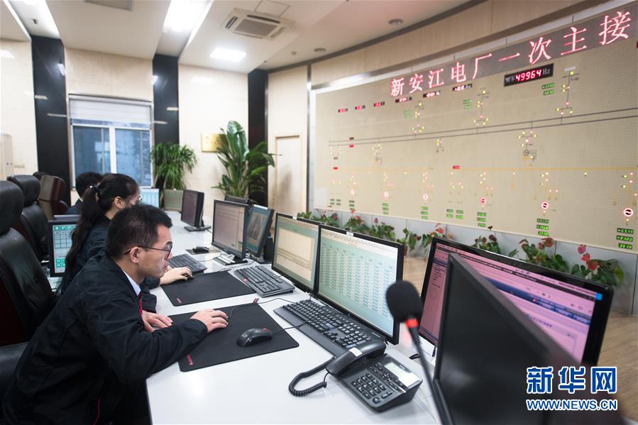 7月7日,新安江電廠工作人員在壩體內(nèi)部中央控制室工作。受持續(xù)降水影響,浙江新安江水庫(kù)水位持續(xù)快速上升。繼當(dāng)日10時(shí)開(kāi)啟3孔、12時(shí)開(kāi)啟5孔泄洪后,新安江水庫(kù)于16時(shí)增加到7孔泄洪。新安江水庫(kù)是華東地區(qū)最大的水庫(kù),在錢塘江流域的防洪度汛中起到關(guān)鍵作用。新華社記者翁忻旸攝