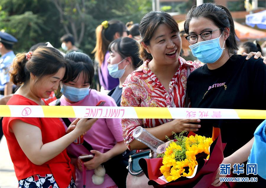 7月8日,在吉林省長春市第八中學考點門口,考生慶祝高考結(jié)束。當日,全國部分地區(qū)2020年高考結(jié)束。新華社發(fā)(顏麟蘊攝)