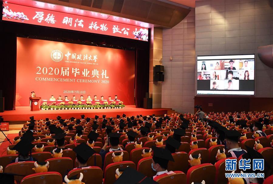 7月10日拍攝的中國政法大學2020屆畢業(yè)典禮現(xiàn)場。當日,中國政法大學舉行2020屆畢業(yè)典禮。由于疫情防控需要,僅少量在校畢業(yè)生在中國政法大學昌平校區(qū)禮堂現(xiàn)場參加畢業(yè)典禮,更多畢業(yè)生通過線上直播參與。新華社記者任超攝