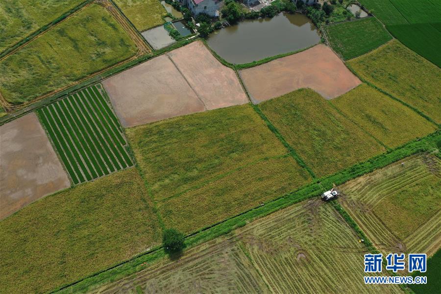 7月11日,在湖南省衡陽(yáng)市衡陽(yáng)縣臺(tái)源鎮(zhèn)臺(tái)九村,村民駕駛收割機(jī)收割早稻(無(wú)人機(jī)照片)。近日,湖南各地農(nóng)村陸續(xù)進(jìn)入“雙搶”季,農(nóng)民緊抓農(nóng)時(shí),搶收搶種,力爭(zhēng)糧食穩(wěn)產(chǎn)豐收。新華社記者趙眾志攝