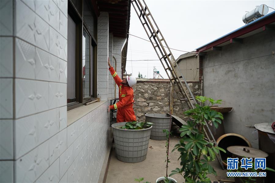 7月12日,消防救援人員在河北省唐山市古冶區(qū)卑家店鎮(zhèn)前巍峰山村村民家中排查。新華社記者 牟宇 攝